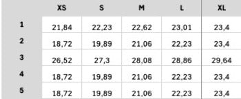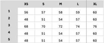 In this table you will find the size specifications of this garment in centimeters.