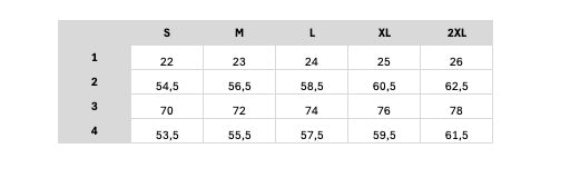 In this table you will find the size specifications of this garment in centimeters.