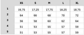 In this table you will find the size specifications of this garment in centimeters.