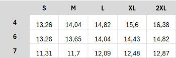 In this table you will find the size specifications of this garment in centimeters.