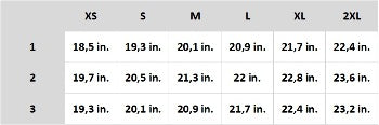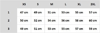 Um die richtige Größe für dich zu wählen, empfehlen wir einen direkten Vergleich mit einem gutsitzenden Teil von dir und den tabellarisch aufgelisteten Größenangaben.